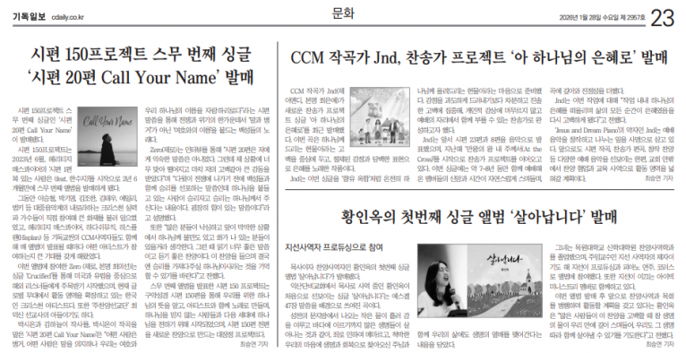 [기사] 황인옥 목사, 첫 싱글 ‘살아납니다’ 발매… 지선 사역자 프로듀싱(기독일보)